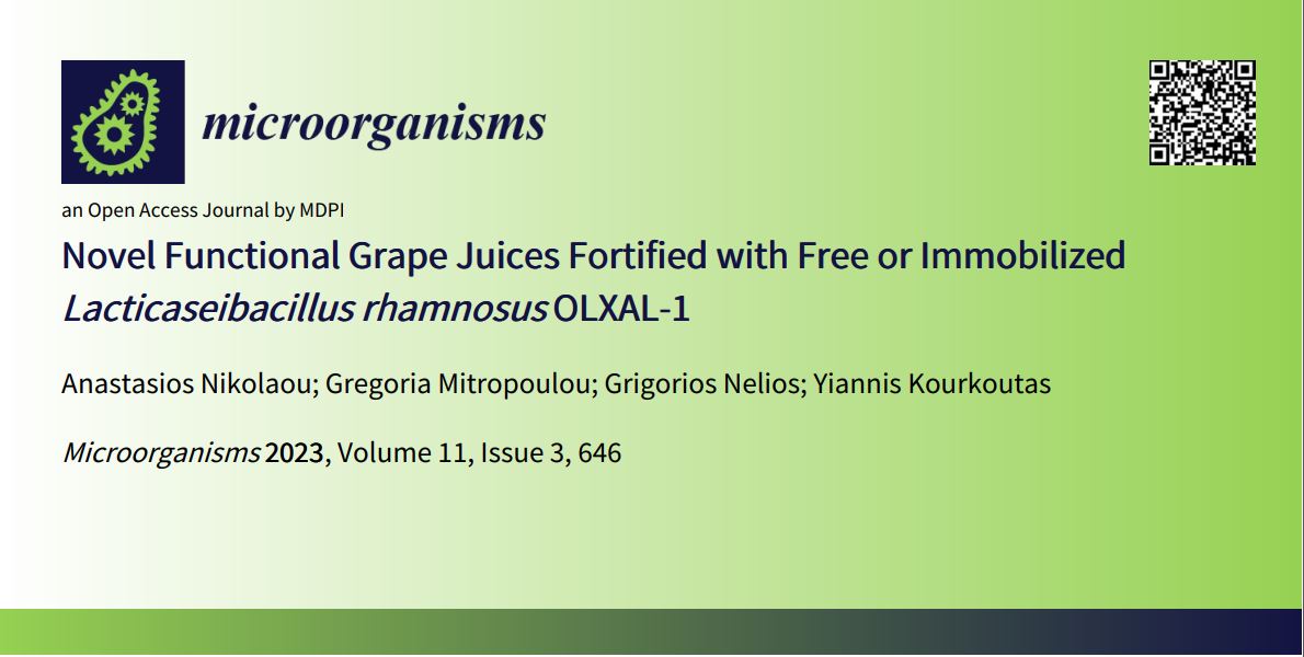 Έργο iFUNcultures: Δημοσίευση-"Novel Functional Grape Juices Fortified with Free or Immobilized Lacticaseibacillus rhamnosus OLXAL-1"