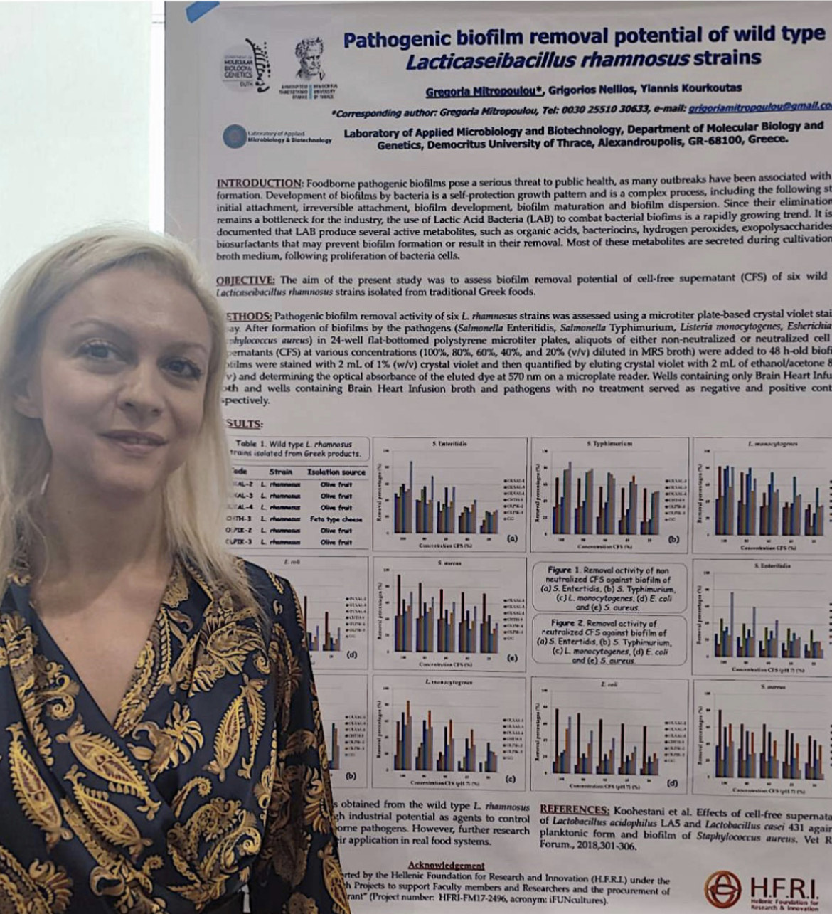 The iFUNcultures project participated in the 30th International Conference of FFC - 18th International Symposium of ASFFBC that was held last week (23-25/9/2022) in the Department of Food Science and Nutrition, University of the Aegean, Myrina, Lemnos, Greece with the poster presentation entitled "Pathogenic biofilm removal potential of wild type Lacticaseibacillus rhamnsosus strains" delivered by Gregoria Mitropoulou (with Grigorios Nelios and Yiannis Kourkoutas Scientific Director).