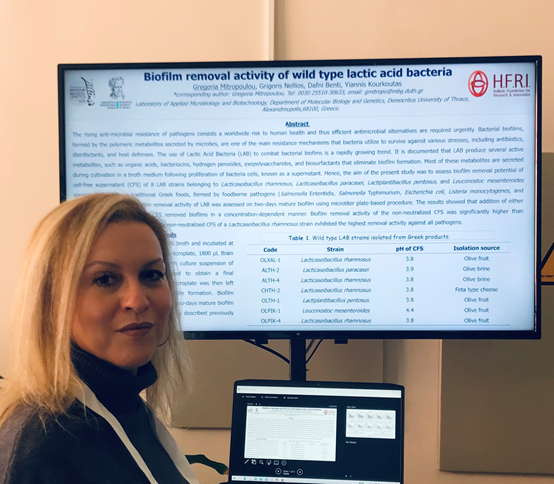Two e-posters entitled «Immobilized probiotics as effective delivery vehicles ensuring cell survival under simulated gastrointestinal transit» and «Biofilm removal activity of wild type lactic acid bacteria» were presented at the 9th Conference of Mikrobiokosmos, held in Athens, Greece, 16-18 December 2021.