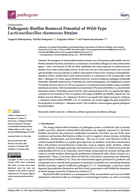 Έργο iFUNcultures: Δημοσίευση-“Pathogenic Biofilm Removal Potential of Wild-Type Lacticaseibacillus rhamnosus Strains”.