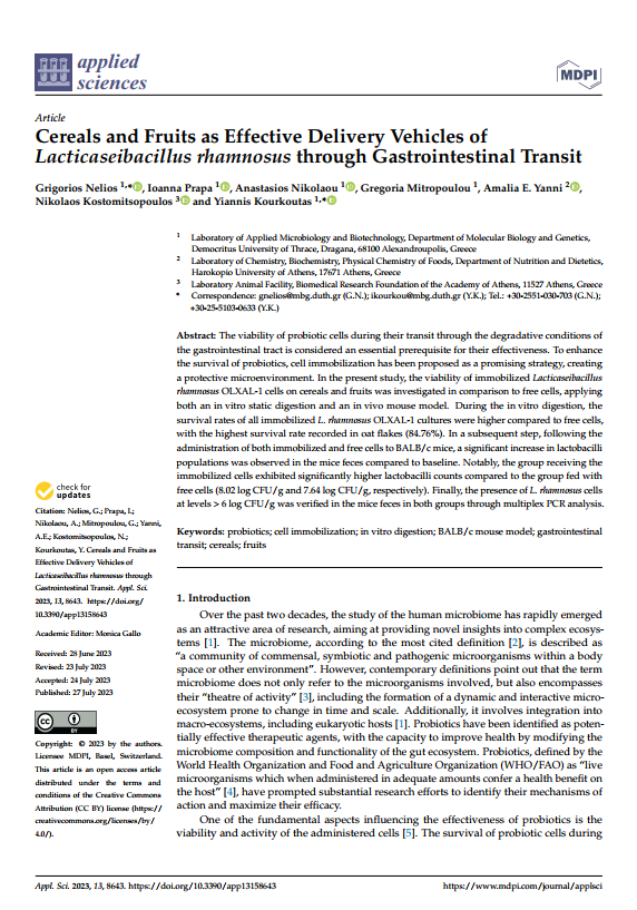 Δημοσίευση-“Cereals and Fruits as Effective Delivery Vehicles of Lacticaseibacillus rhamnosus through Gastrointestinal Transit”